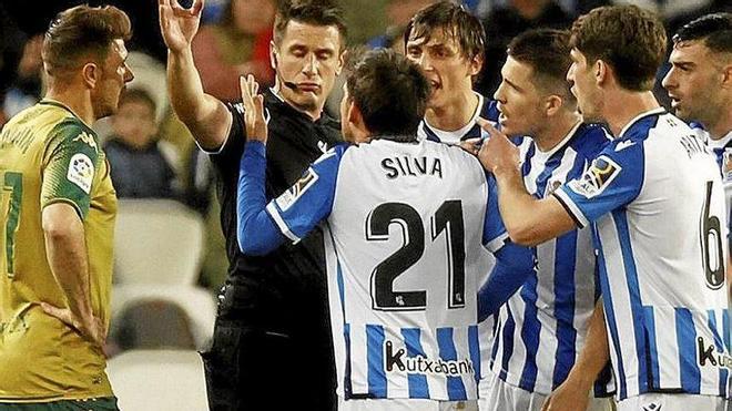 - Anoeta asistió el viernes a una circunstancia que muy pocas veces se ha podido ver. David Silva solo había sido expulsado tres veces más en su larga carrera de 800 partidos. La roja que el canario vio ante el Betis fue la cuarta y se debió, según recogió en el acta el árbitro Díaz de Mera Escuderos, a espetarle un “vete a la mierda”. El futbolista se expone a un castigo de entre uno y tres partidos de sanción.