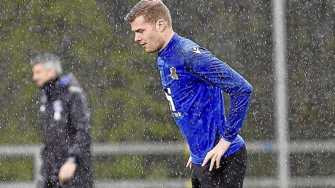 Si hay un futbolista que está acabando en forma la temporada después de haber pasado inadvertido, este es Alexander Sorloth. Como informó el medio afín al club, la fecha para abonar la opción de compra ya ha pasado, por lo que la única forma de lograr su contratación definitiva es alcanzar un acuerdo con el Leipzig. Este periódico ha podido confirmar que, a pesar de que el jugador manifestó que le gustaría seguir y el propio Imanol ha reconocido que estaba contento con su rendimiento y que si fuera por él no se marcharía ninguno, todo parece indicar que no va a seguir. El Leipzig es un duro negociador y no tiene ningún problema en abrir una subasta para traspasarlo al mejor postor. En Alemania aseguran que su precio de salida está más cerca de los 20 millones que de los 15 (la opción txuri-urdin ascendía a los 16), una cantidad casi prohibitiva para la Real. Sobre todo si se tiene en cuenta que sus números han sido bastante discretos, con siete goles en total (solo tres de ellos en Liga). En su descarga cabe destacar que el inmovilismo en la pizarra de Imanol a lo largo de dos tercios de la campaña ha provocado que no encontrara hueco en el once.