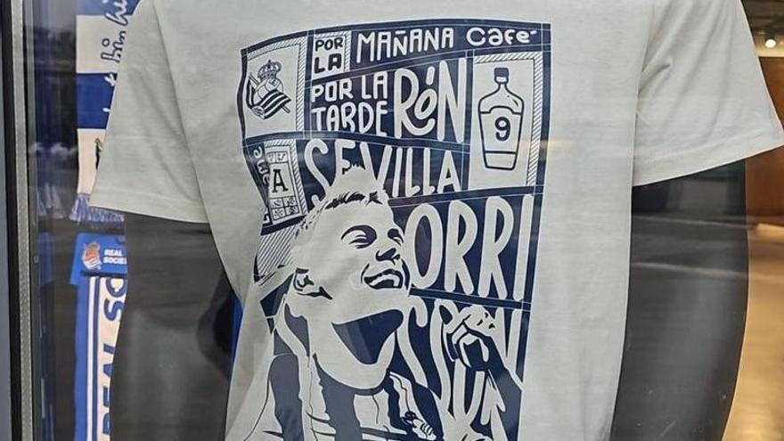 Desde primera hora de este jueves, la camiseta más buscada era la del delantero islandés Orri Óskarsson, aunque con un matiz importante. Lejos de plasmar el dorsal del atacante en la casaca txuri-urdin, la camiseta presenta un diseño especial, con el lema más repetido de esta edición de la Copa del Rey: "Por la mañana café, por la tarde ron, llévame a Sevilla Orri Óskarsson".