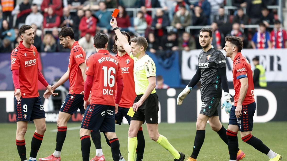 El delantero fue expulsado en el partido que el pasado sábado disputó el conjunto navarro ante el Mallorca en El Sadar (2-2), mientras que el centrocampista recibió la quinta tarjeta amarilla, por lo que no podrá jugar por acumulación de amonestaciones.