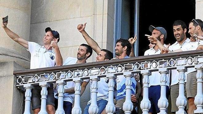 donostiarra celebró a lo grande, como merecía la ocasión, su primera bandera en la Liga Eusko Label. Una kalejira desde el Boulevard hasta la plaza de la Constitución, el recibimiento allí del alcalde, Eneko Goia, y el contacto con los numerosos aficionados al remo de Donostia simbolizaron un día inolvidable para la trainera, que está protagonizando un fantástico verano.
