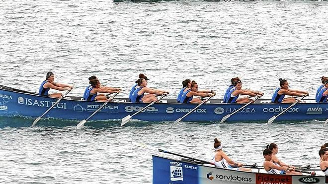 Pocas veces se ha encontrado en la corta historia de la edición femenina de la Bandera de La Concha, nacida en 2008, a más de dos traineras llegando con opciones reales de poder proclamarse campeona en la bahía donostiarra el segundo fin de semana. Una pelea a cuatro bandas, desde luego, nunca. Sí la hemos visto en varias ocasiones a tres bandas. 2011 es uno de esos años, cuando Zumaia entró en meta cuatro segundos y 32 centésimas más rápido que la Galicia de Rías Baixas y cinco segundos y dos centésimas mejor que Getaria-Tolosa. Encontramos otro precedente en 2014, cuando San Juan, Hibaika y Zumaia finalizaron la primera jornada con solo cuatro segundos y 48 centésimas entre ellas, en ese orden, entrando las de Errenteria a 1.32 y Zumaia en esos mencionados cuatro segundos y medio. Las bateleras acabaron ganando la Bandera de La Concha y Zumaia fue segunda tras ganar la segunda jornada, dos centésimas mejor que la Madalen en la sumatoria de los dos fines de semana. En 2015 las tres mismas protagonistas tuvieron una pugna similar, con solo tres segundos entre ellas. Y en 2016, San Juan, Hibaika y Orio entraron en meta con un intervalo de solo tres segundos y 74 centésimas entre las tres. Fueron los años dorados de las pasaitarras.