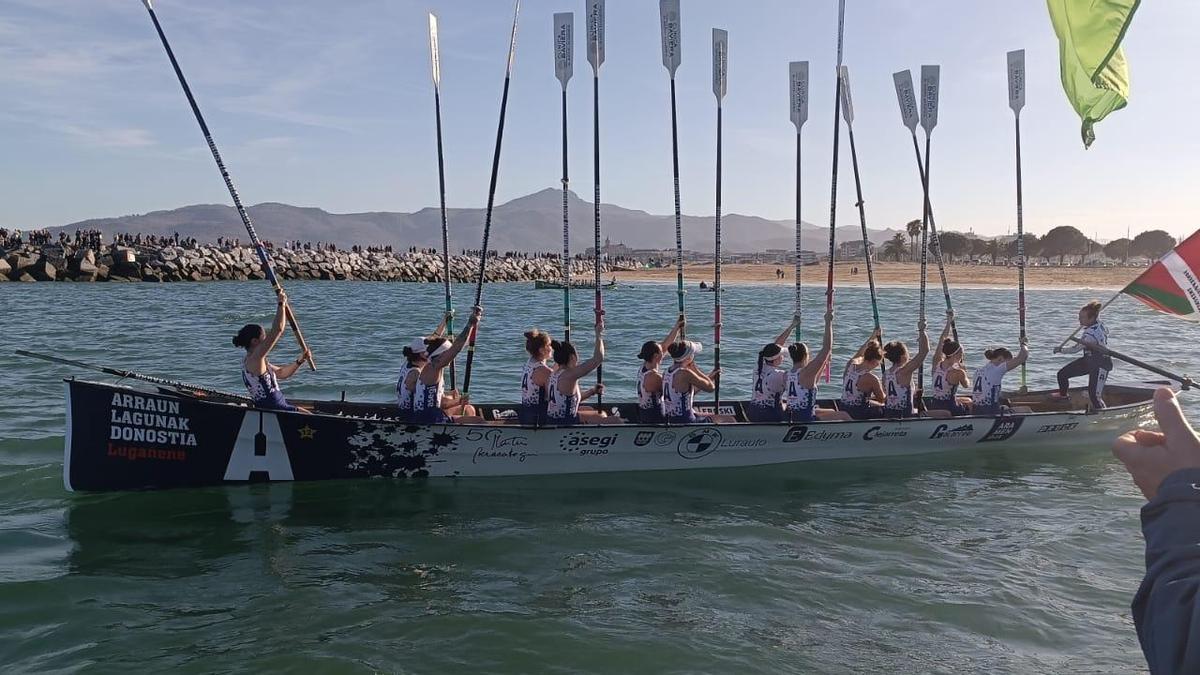 En la regata femenina, la Lugañene no tuvo rivales y revalidó su triunfo de pasado año en aguas hondarribiarras. El bote dirigido por Juan Mari Etxabe parece conservar el estado de forma que le llevaron a proclamarse campeón de liga y ganador de la Bandera de La Concha en 2025, y superaron en 18 segundos y 57 segundos a la siguiente clasificada, Hondarribia. La Ama Guadalupekoa, que este año bogará en la Liga ETE a las órdenes de Osertz Alday, adelantó a cuatro traineras de la máxima categoría. Hibaika, Tolosaldea, Donostiarra, Zarautz y Zumaia completaron la clasificación.