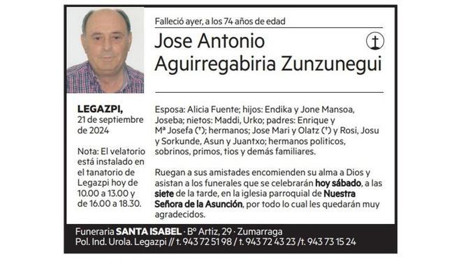 JOSE ANTONIO AGUIRREGABIRIA ZUNZUNEGUI