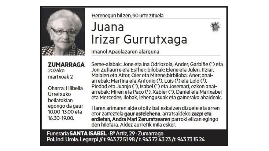 JUANA IRIZAR GURRUTXAGA