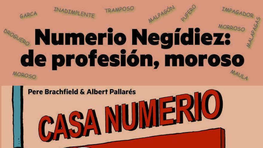 Pero, ¿quién es Numerio Negídiez? Según el creador de los bocadillos y textos, este personaje toma su nombre del término romano con el que en la asignatura de Derecho Romano se califica a las personas que no pagaban sus deudas, esos "morosos contumaces y recalcitrantes" que identifican en el cómic para que los "empresarios los reconozcan".