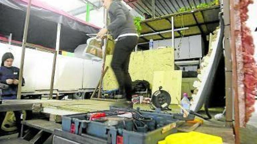 Las horas, los días, pasan rápido en el pabellón Bellota del polígono Usabal que el Ayuntamiento de Tolosa ha alquilado también este año para que los grupos de las carrozas más grandes puedan realizar su trabajo.