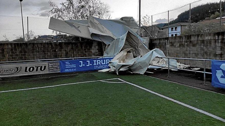 En Aretxabaleta, el tejado de una nave cercana cayó sobre el campo de fútbol Ibarra y en Bergara la caída de un árbol provocó el cierre del bidegorri en la zona de Labegaraieta.
