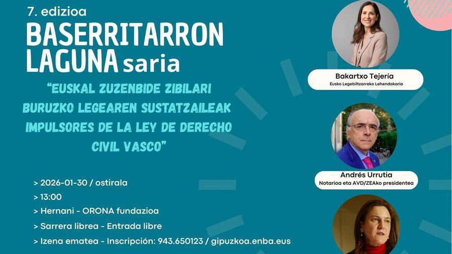 ENBA premiará a los promotores de la Ley de Derecho Civil en la séptima edición del galardón Baserritarron Laguna. Según el sindicato agrario, la norma ha resultado clave para garantizar “la plena libertad” de los propietarios a la hora de transmitir sus fincas, evitando así la fragmentación de explotaciones agrícolas históricamente pequeñas.