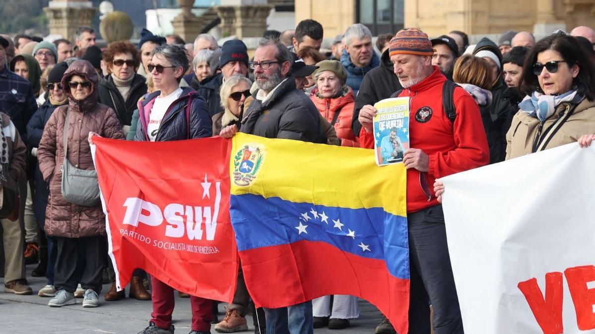 En Donostia, varios cientos de personas se han congregado en los jardines de Alderdi Eder, frente al Ayuntamiento, donde han desplegado una pancarta con el lema de la convocatoria. Un grupo portaba además una bandera de Venezuela así como otra con las siglas del Partido Socialista Unido de ese país.