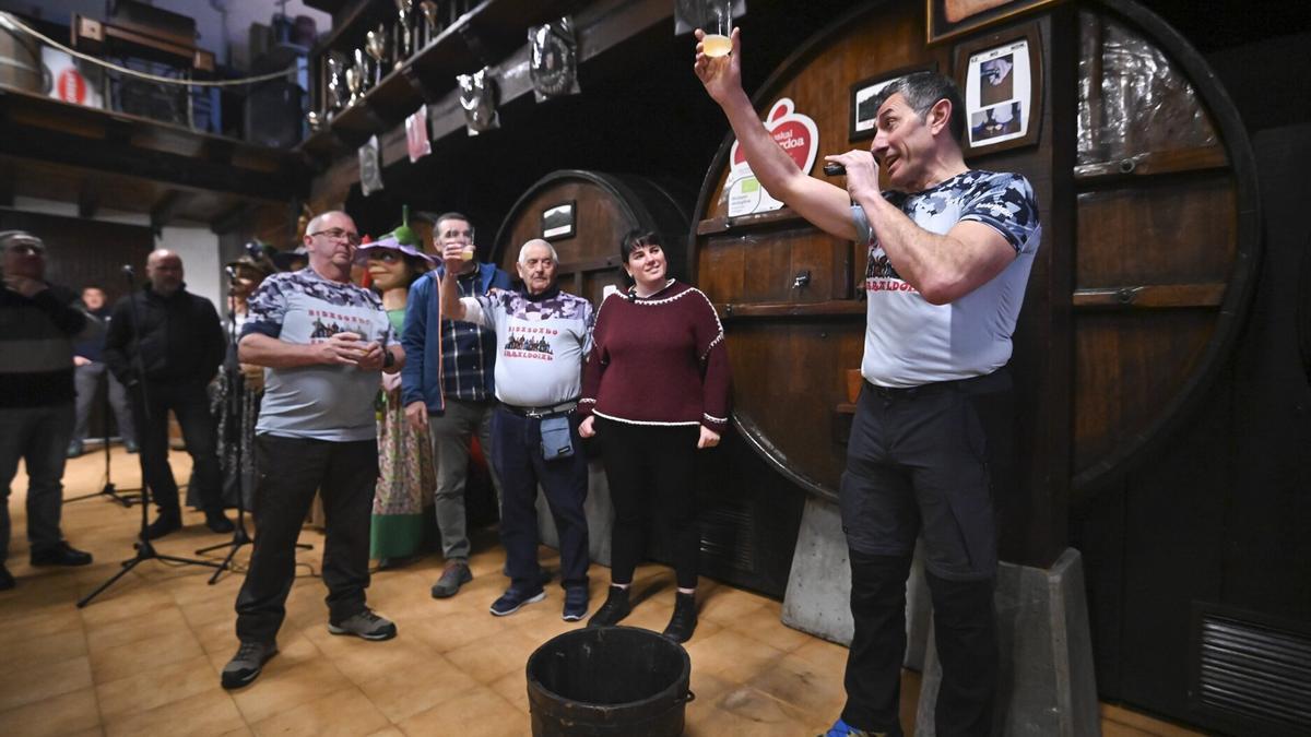 El protagonista indiscutible es, como no podía ser de otra manera, la sidra natural al txotx, que se degusta directamente de la kupela siguiendo el ritual tradicional. Además, en cada mesa se ofrece también zumo de manzana, una alternativa muy valorada que refuerza el protagonismo del producto local.