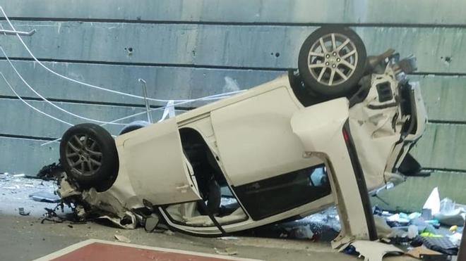 Un coche se ha despeñado este viernes desde el cuarto piso del parking del aeropuerto de Bilbao, quedando dado la vuelta en el suelo, con las ventanas y el chasis destrozado. A pesar de lo aparatoso del accidente, el conductor, que podría estar implicado con el crimen del barrio de Errekalde de Bilbao, ha podido salir por su propio pie del vehículo y ahora es la Ertzaintza quien le busca.