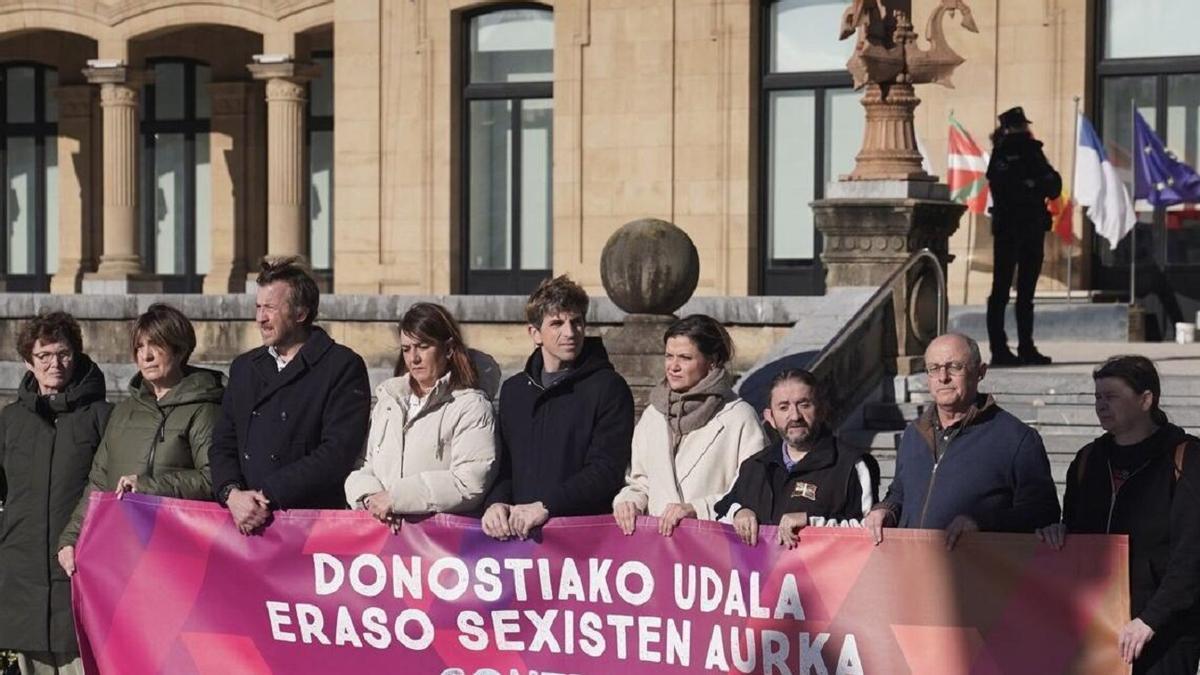 Insausti ha encabezado la concentración que ha llevado a cabo este mediodía el Ayuntamiento donostiarra en Alderdi Eder para condenar esta presunta agresión, en la que han participado miembros de todos los grupos municipales -PNV, PSE, EH Bildu, PP y Elkarrekin Donostia-, así como representantes de la Diputación foral de Gipuzkoa, entre otros.
