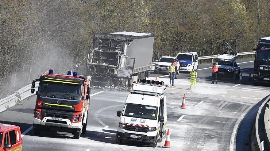 El vehículo, que se ha incendiado en plena carretera en el kilómetro 28, ha obligado a cortar la carretera hasta que el accidente ha sido estabilizado, lo que ha generado retenciones de más de tres kilómetros. Actualmente, se encuentra abierto uno de los tres carriles para la circulación.